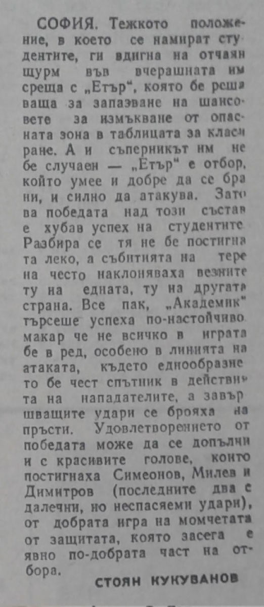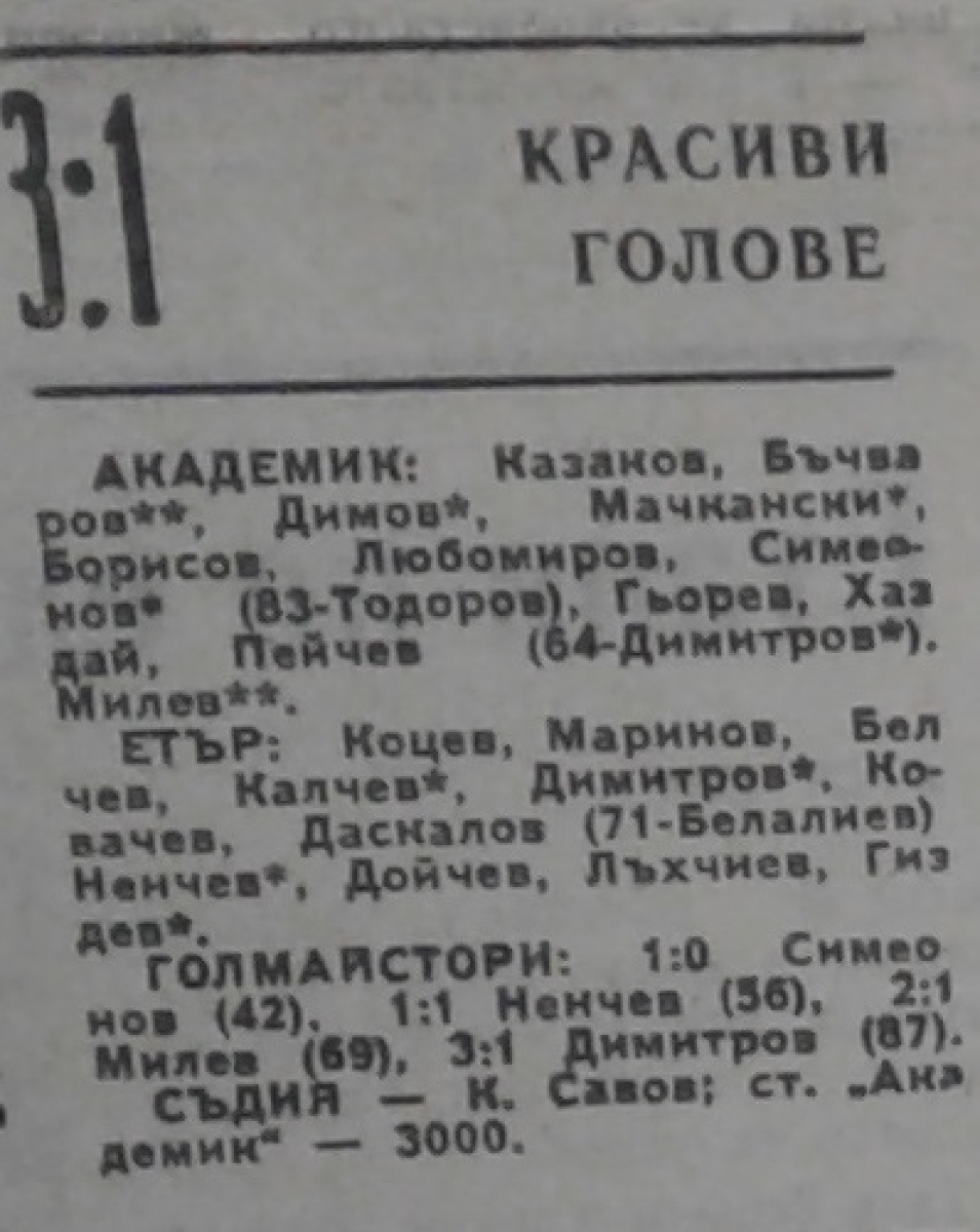 «Академик» София - «Этыр» Велико-Тырново - 3:1