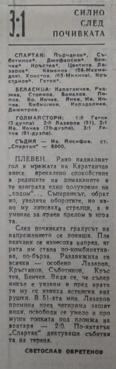«Спартак» Плевен - «Беласица» Петрич - 3:1