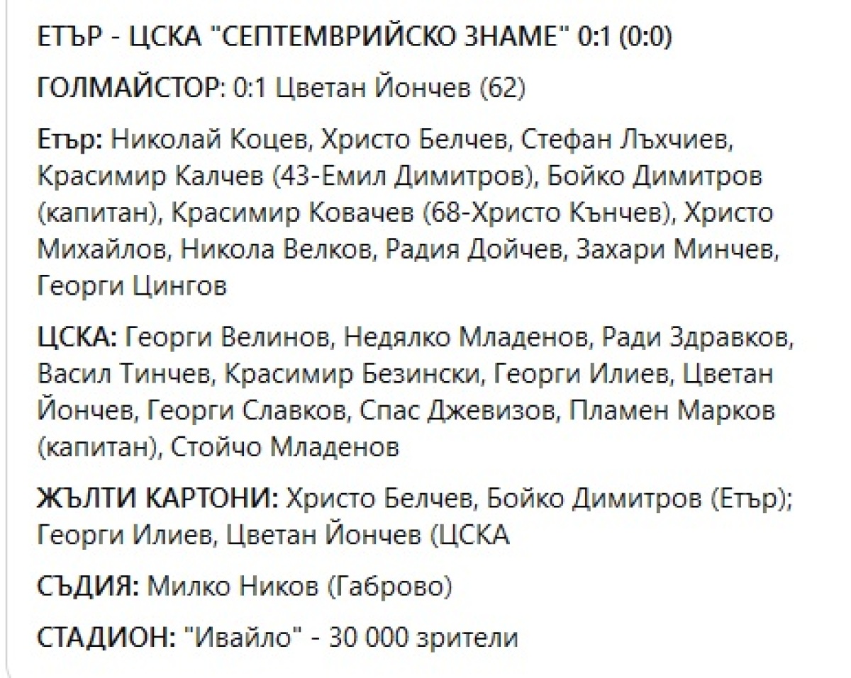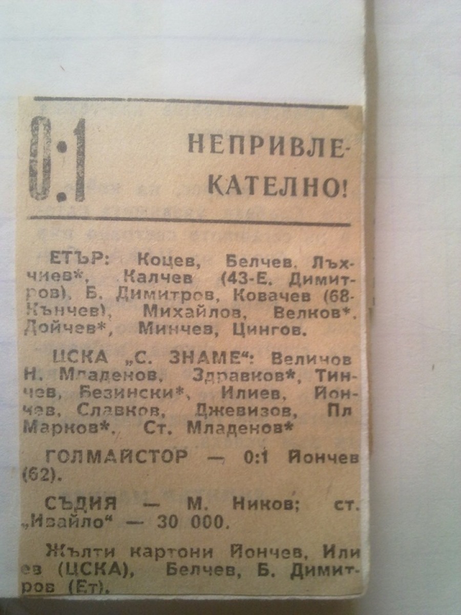 «Этыр» Велико-Тырново - «ЦСКА Септемврийско Знаме» София - 0:1