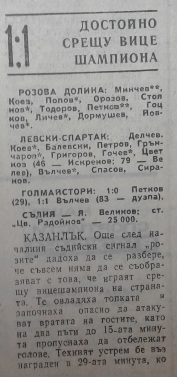 «Розова долина» Казанлык - «Левски-Спартак» София - 1:1