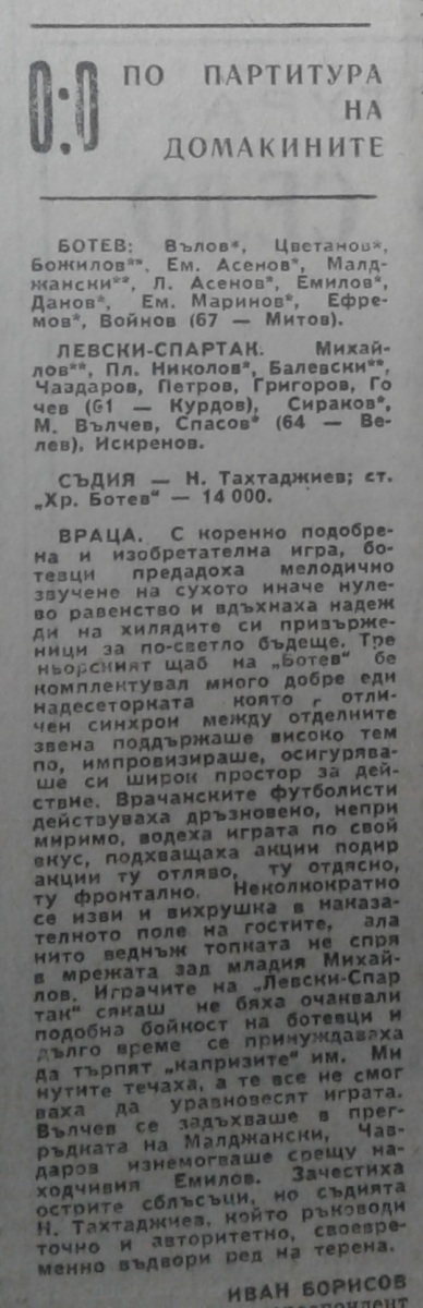 «Ботев» Враца - «Левски-Спартак» София - 0:0
