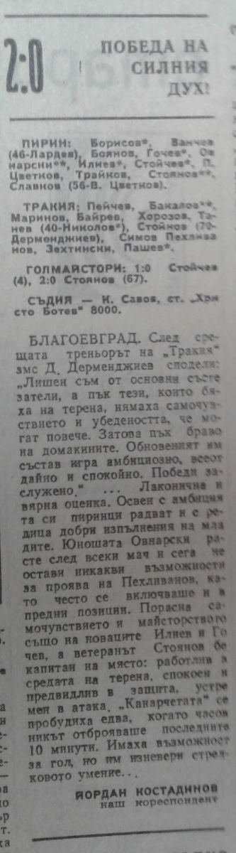 «Пирин» Благоевград - «Тракия» Пловдив - 2:0