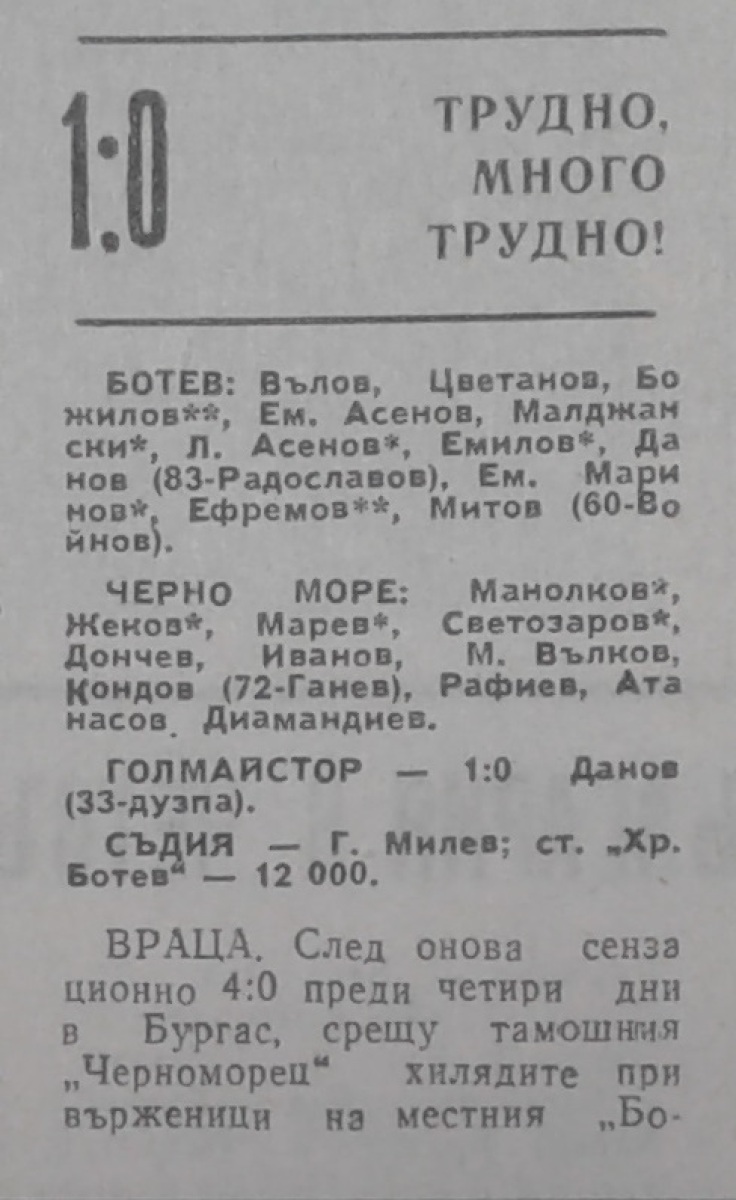 «Ботев» Враца - «Черно море» Варна - 1:0