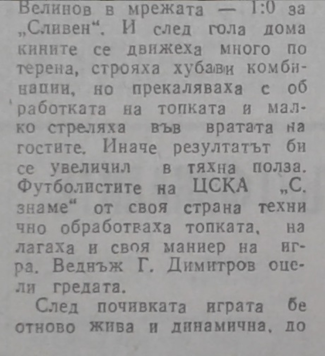 АФД Сливен - «ЦСКА Септемврийско Знаме» София - 1:1