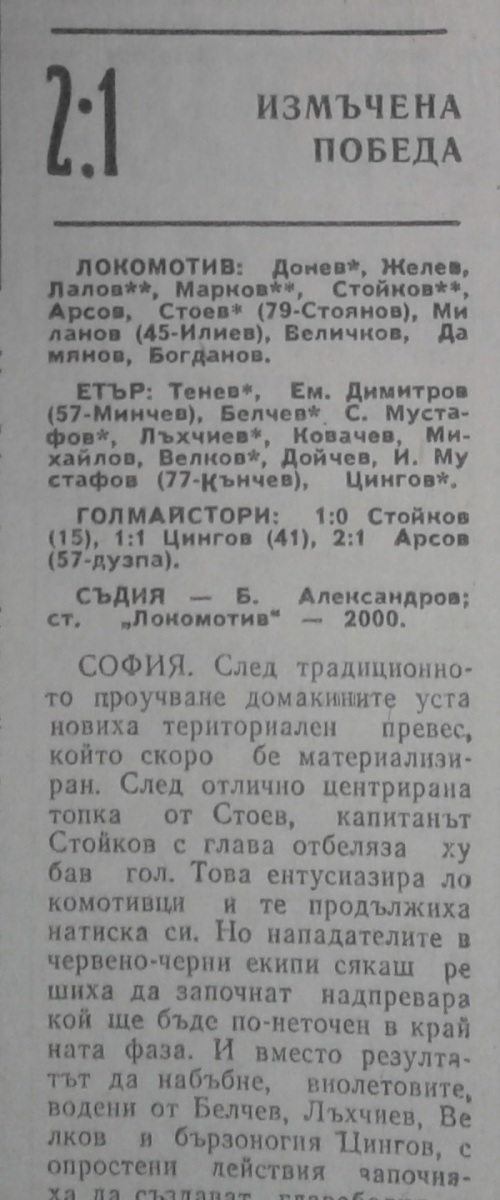 «Локомотив» София - «Этыр» Велико-Тырново - 2:1