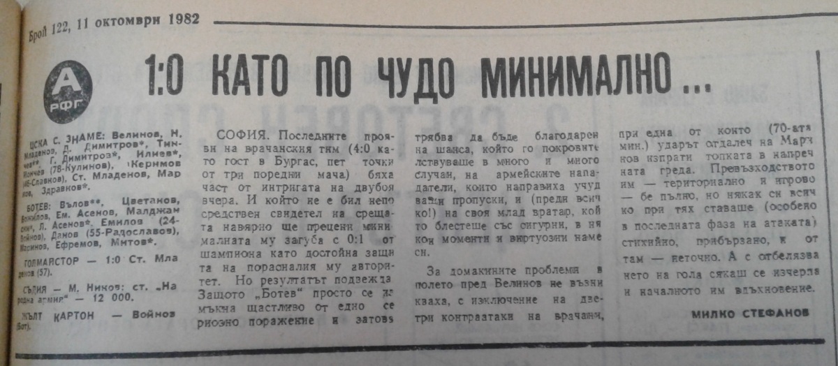 «ЦСКА Септемврийско Знаме» София - «Ботев» Враца - 1:0