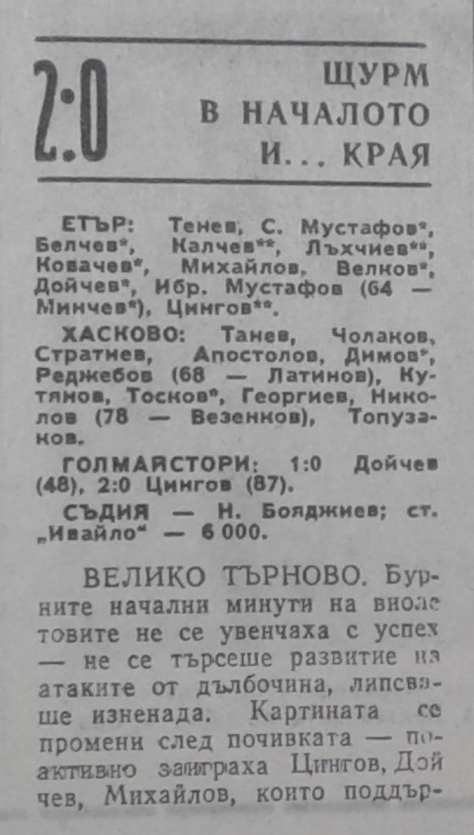 «Этыр» Велико-Тырново - «Хасково» Хасково - 2:0