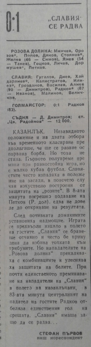 «Розова долина» Казанлык - «Славия» София - 0:1