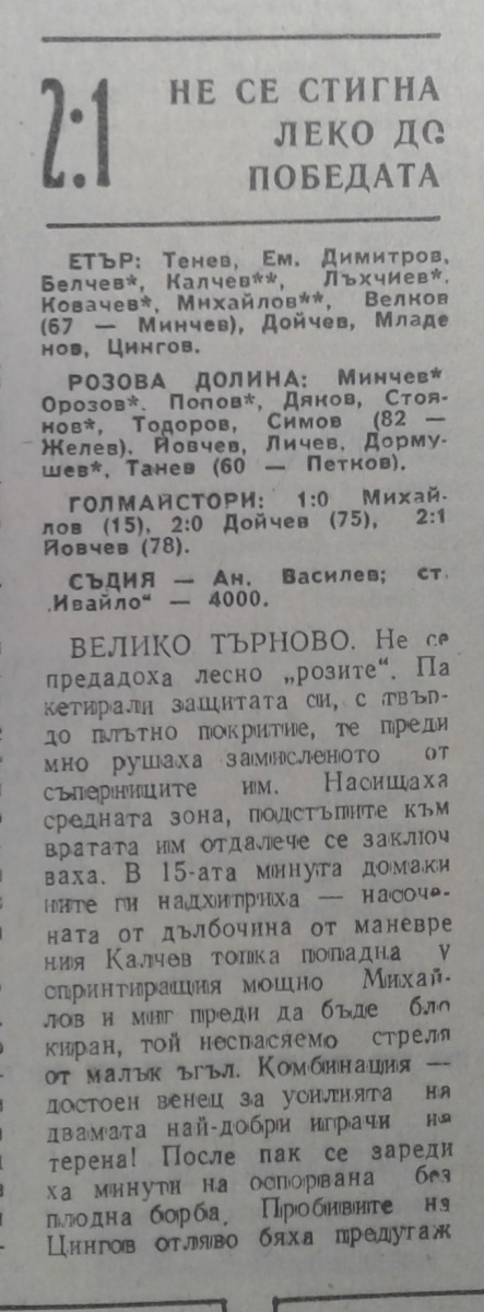 «Этыр» Велико-Тырново - «Розова долина» Казанлык - 2:1