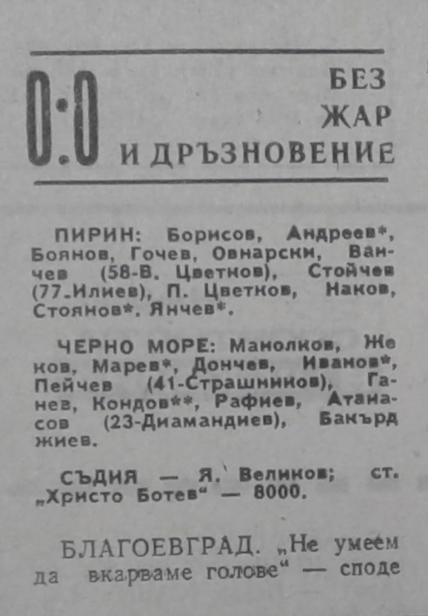 «Пирин» Благоевград - «Черно море» Варна - 0:0