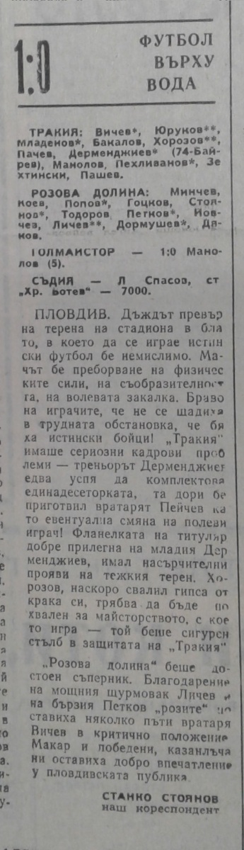 «Тракия» Пловдив - «Розова долина» Казанлык - 1:0