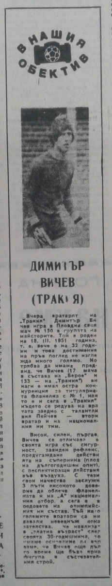 Любен Спасов дебютировал в качестве судьи \\«А\\» РФГ.\r\nДимитар Вичев, голкипер Тракии Пловдив провёл свой 150-й матч в высшем дивизионе \«А\» РФГ.