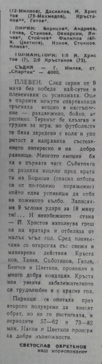 «Спартак» Плевен - «Пирин» Благоевград - 2:0