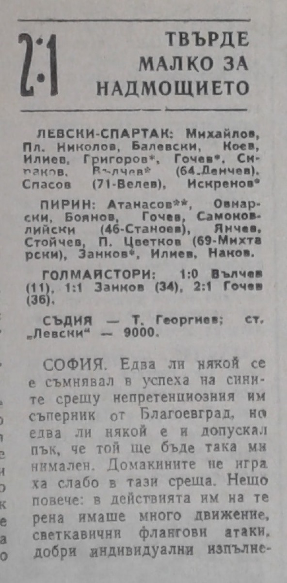 «Левски-Спартак» София - «Пирин» Благоевград - 2:1