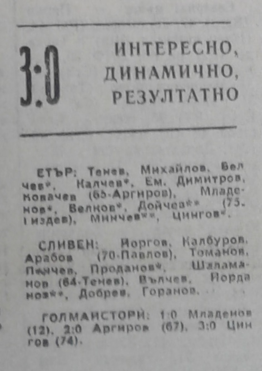 «Этыр» Велико-Тырново - АФД Сливен - 3:0