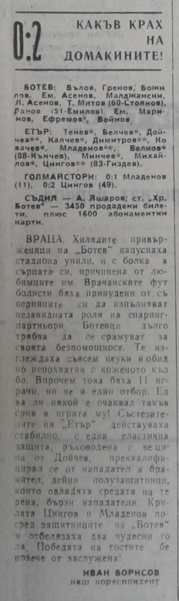 «Ботев» Враца - «Этыр» Велико-Тырново - 0:2