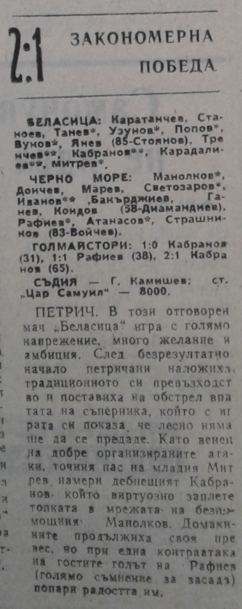 «Беласица» Петрич - «Черно море» Варна - 2:1