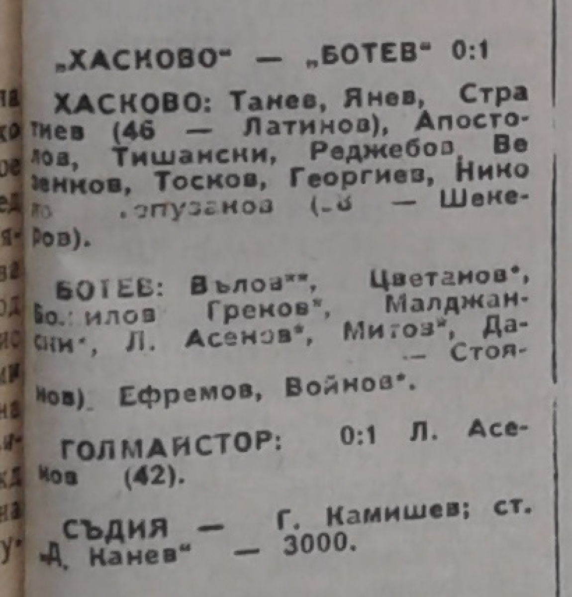 «Хасково» Хасково - «Ботев» Враца - 0:1
