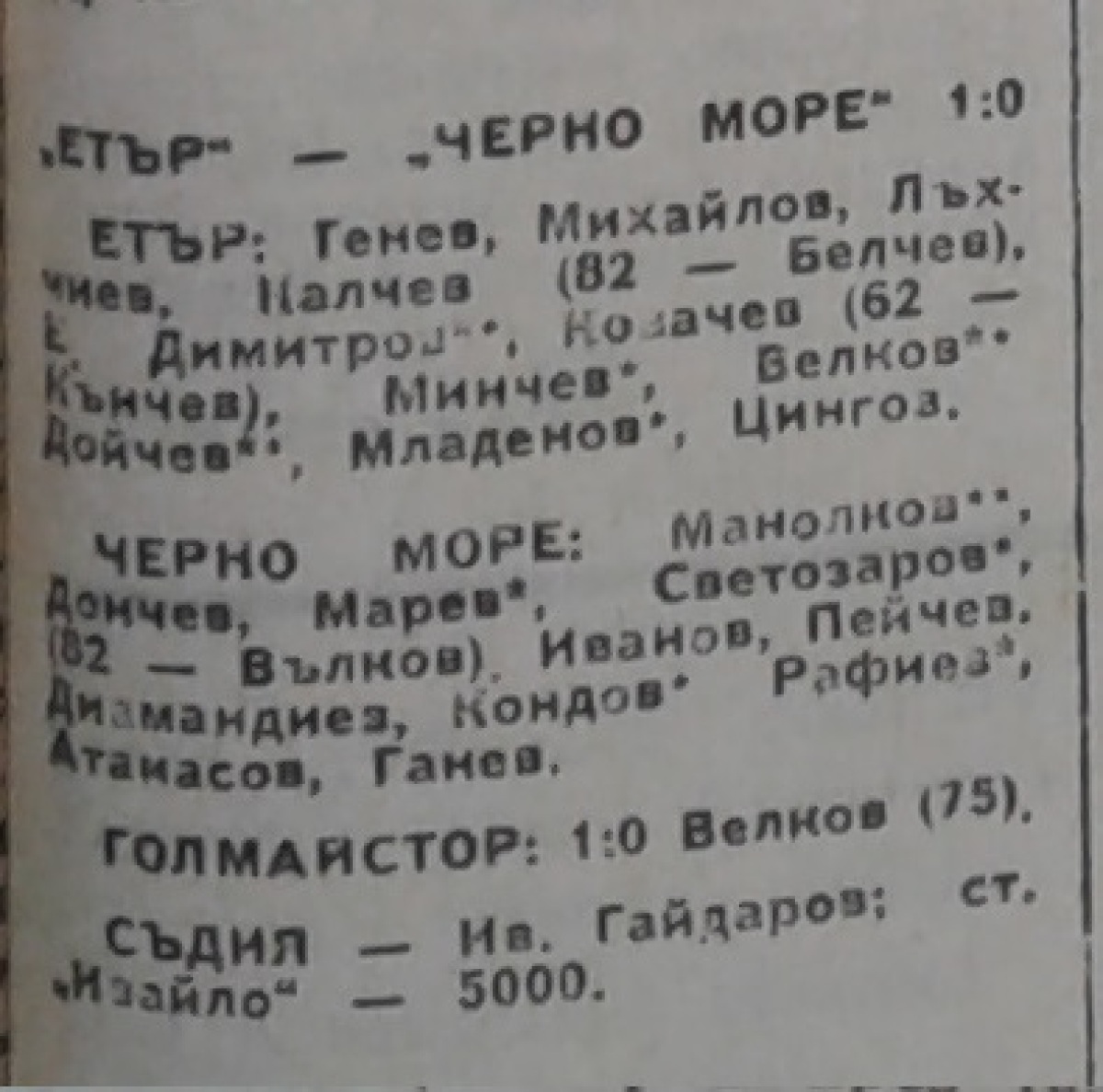 «Этыр» Велико-Тырново - «Черно море» Варна - 1:0
