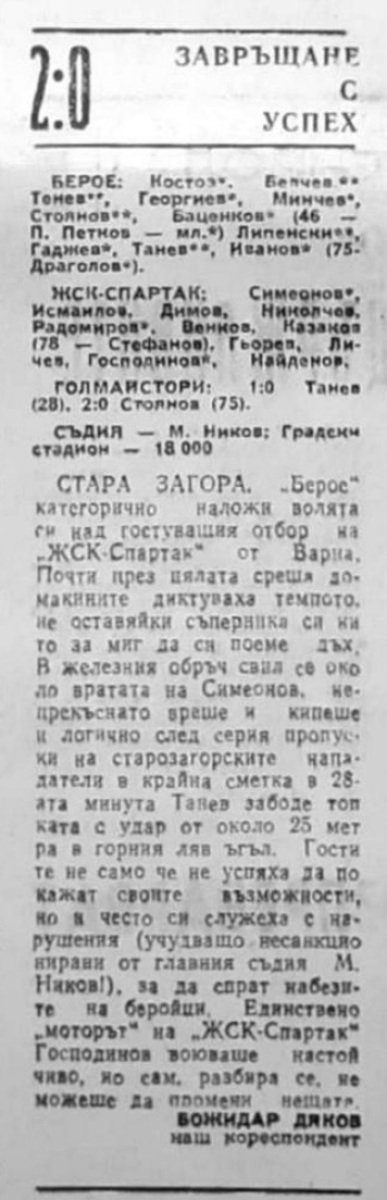 «Берое» Стара-Загора - «ЖСК-Спартак» Варна - 2:0