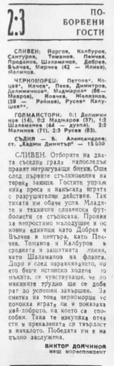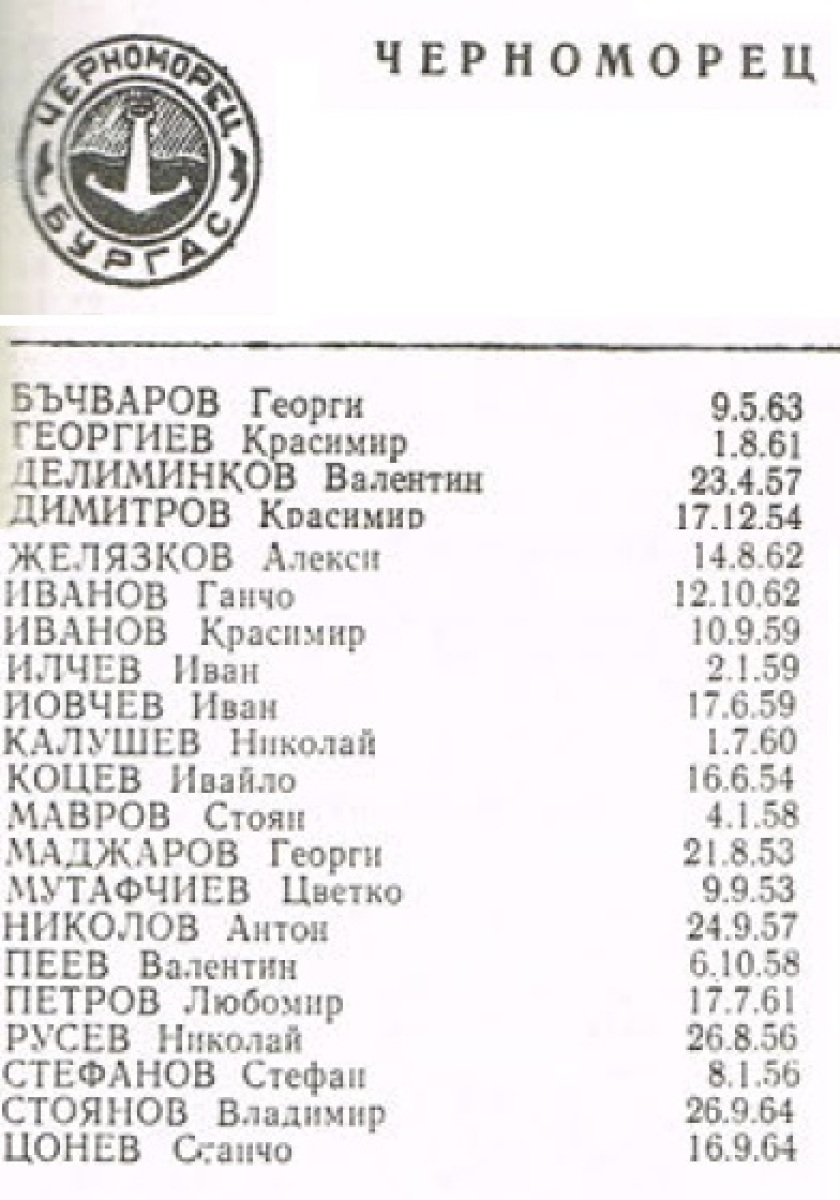 Иван Йовчев («Черноморец» Бургас) провёл свой 150-й матч в А РФГ (1977/78 - 26/0, 1978/79 - 18/1, 1979/80 - 26/2, 1980/81 - 25/3, 1981/82 - 28/3, 1982/83 - 26/1, 1983/84 - 1/0).