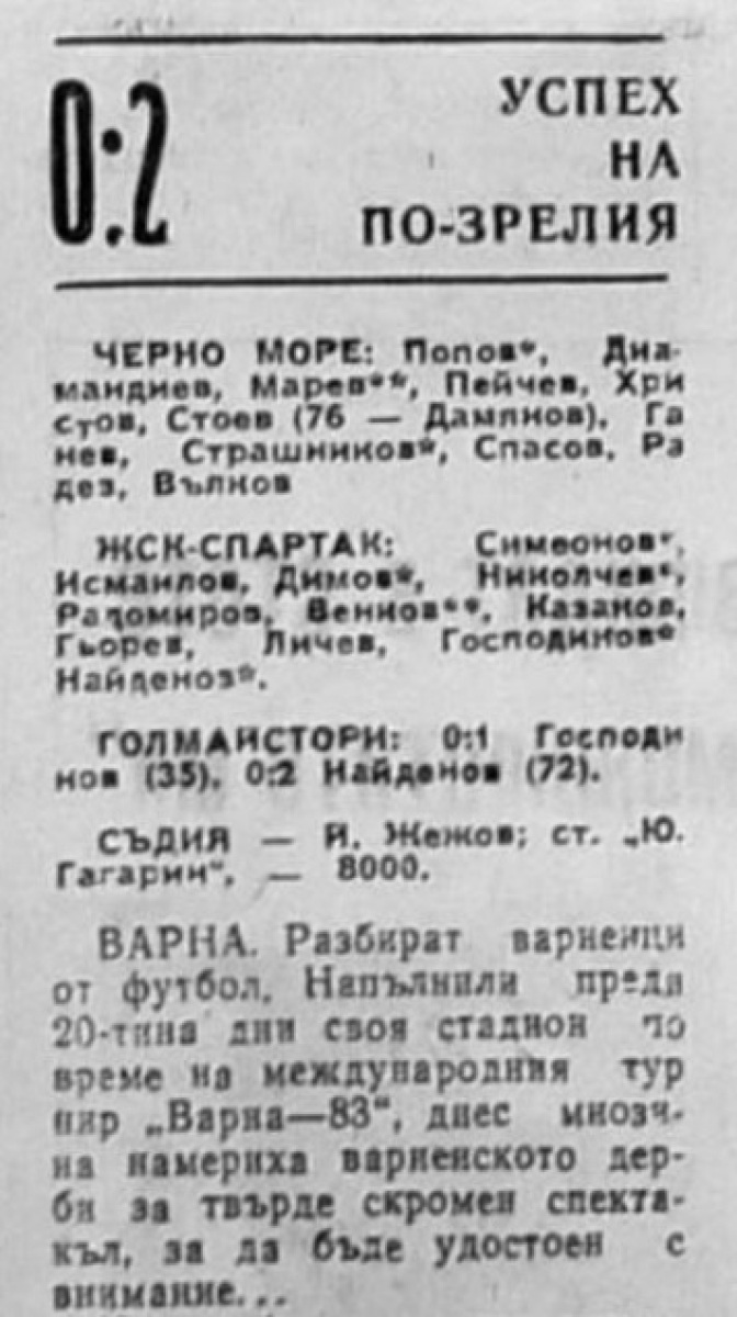 «Черно море» Варна - «ЖСК-Спартак» Варна - 0:2