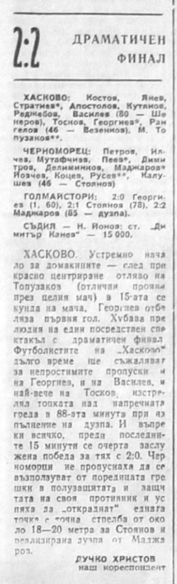 «Хасково» Хасково - «Черноморец» Бургас - 2:2