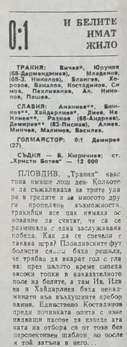 «Тракия» Пловдив - «Славия» София - 0:1