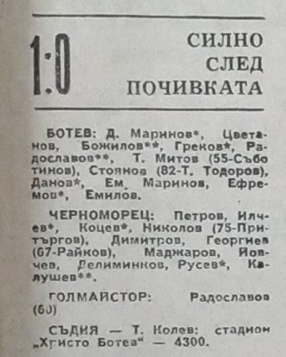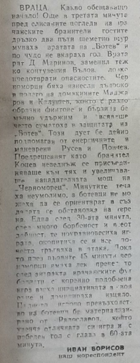 «Ботев» Враца - «Черноморец» Бургас - 1:0