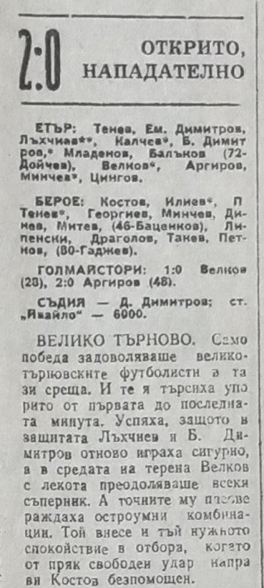 «Этыр» Велико-Тырново - «Берое» Стара-Загора - 2:0