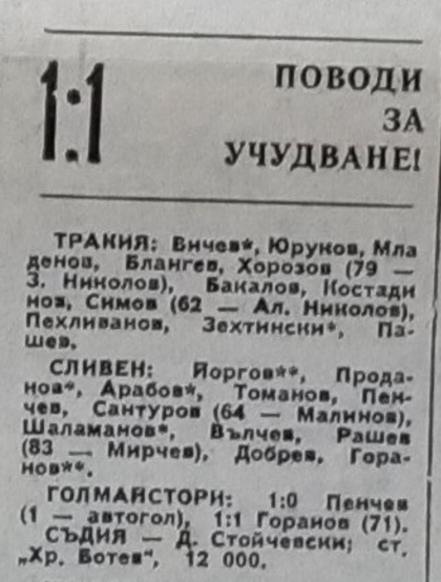 «Тракия» Пловдив - АФД Сливен - 1:1