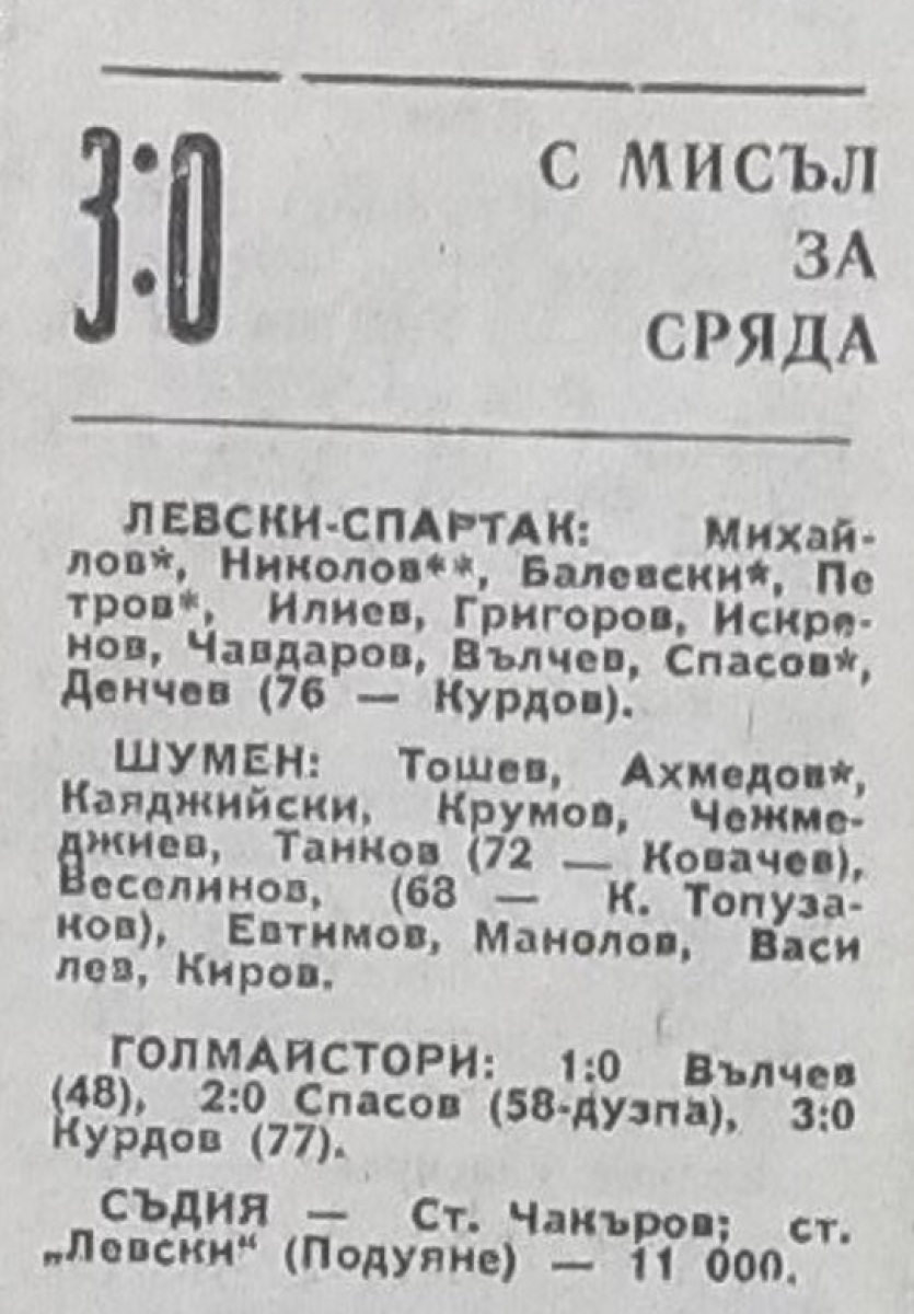 «Левски-Спартак» София - «Шумен» Шумен - 3:0