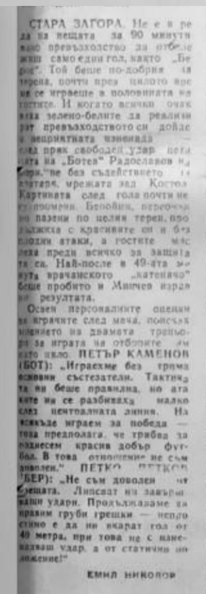 «Берое» Стара-Загора - «Ботев» Враца - 1:1