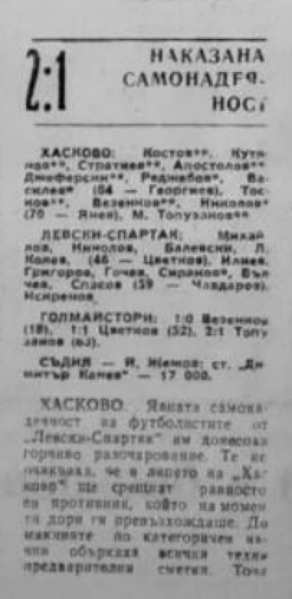 «Хасково» Хасково - «Левски-Спартак» София - 2:1