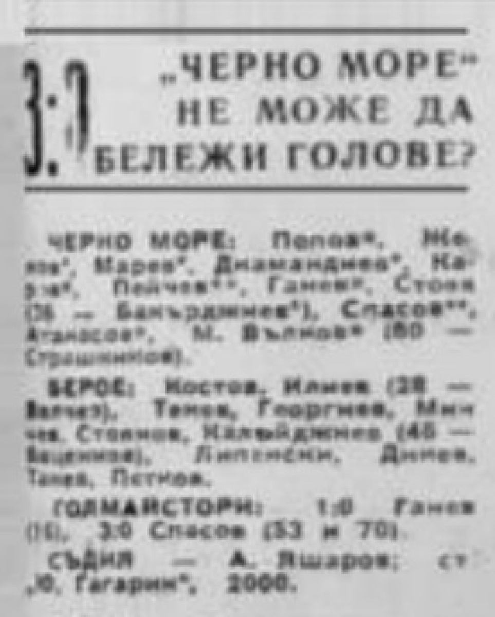 «Черно море» Варна - «Берое» Стара-Загора - 3:0