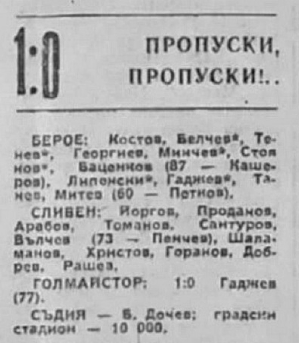 «Берое» Стара-Загора - АФД Сливен - 1:0