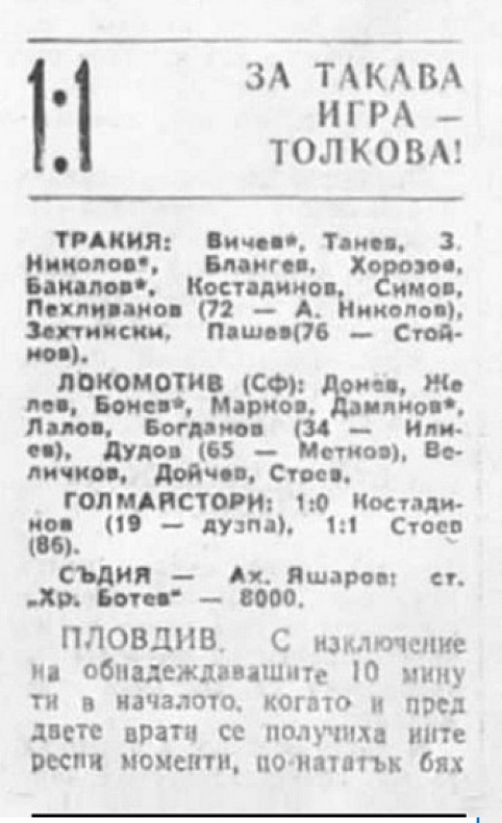 «Тракия» Пловдив - «Локомотив» София - 1:1