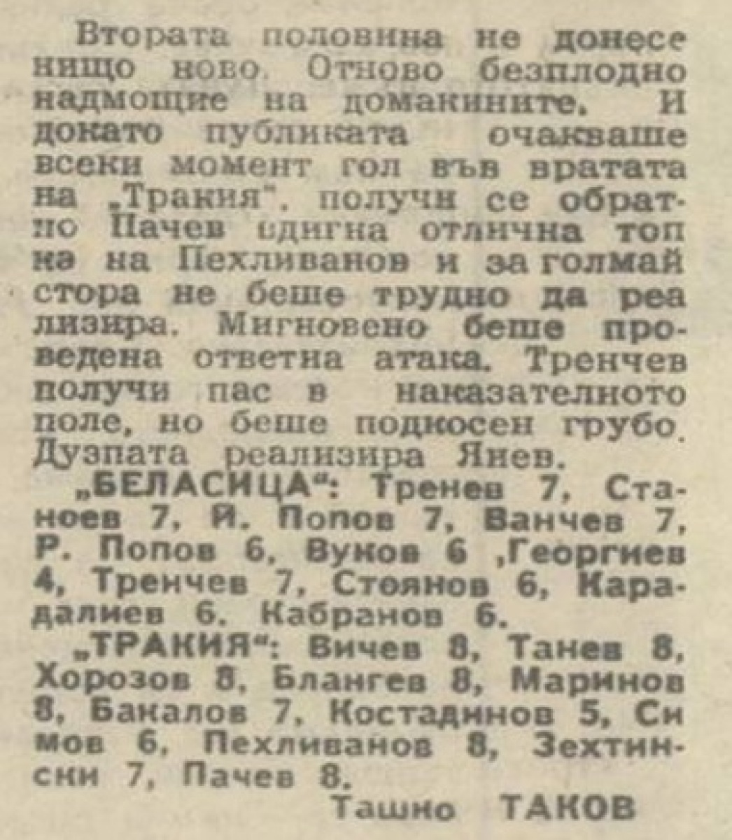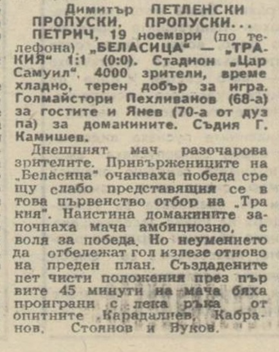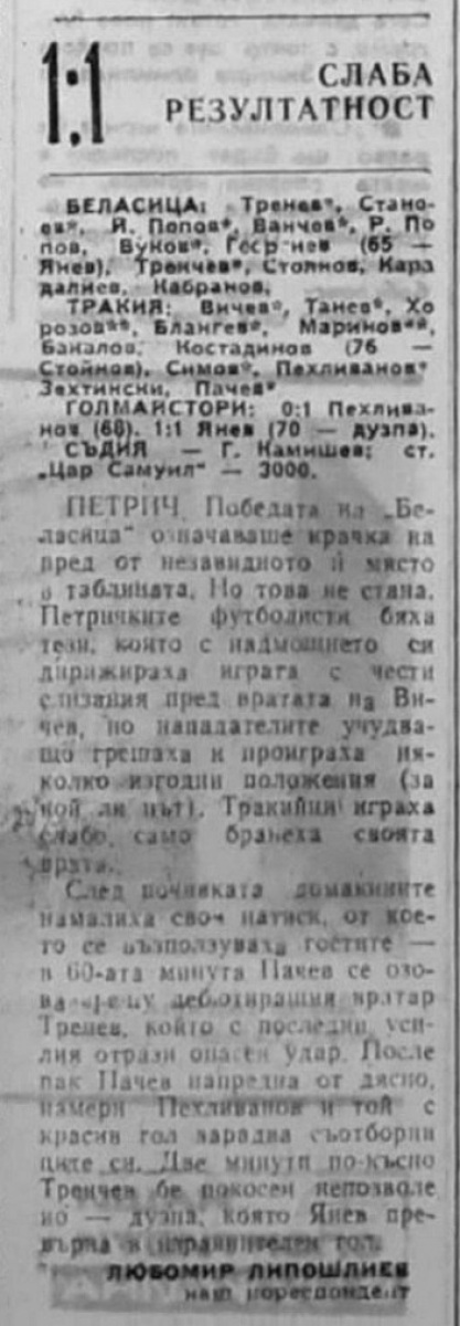 «Беласица» Петрич - «Тракия» Пловдив - 1:1