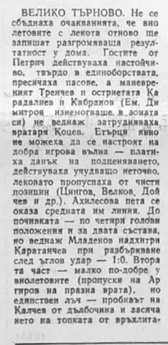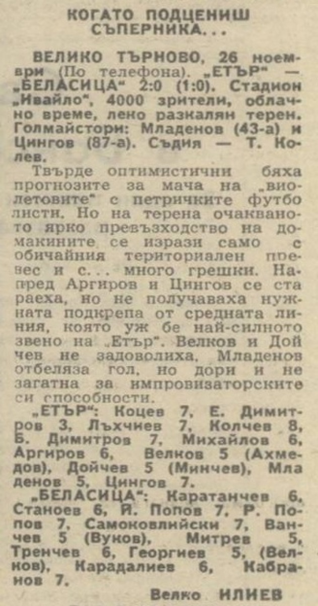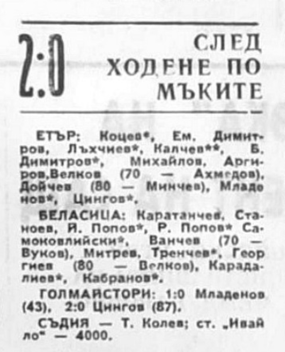 «Этыр» Велико-Тырново - «Беласица» Петрич - 2:0