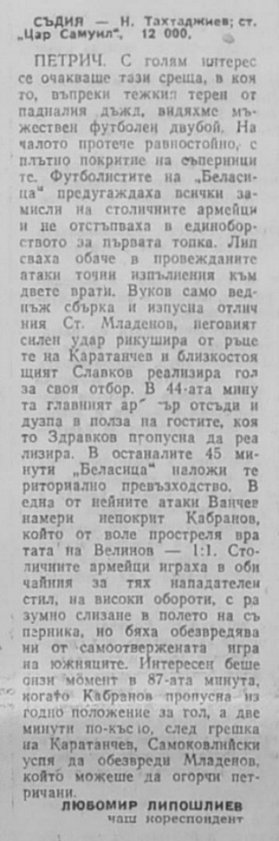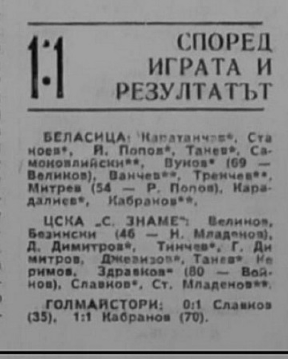 «Беласица» Петрич - «ЦСКА Септемврийско Знаме» София - 1:1