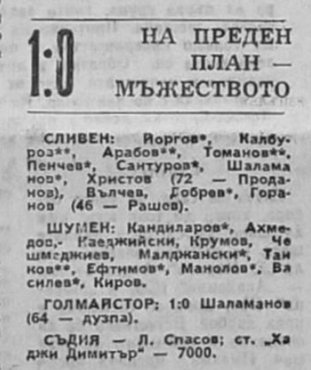 АФД Сливен - «Шумен» Шумен - 1:0