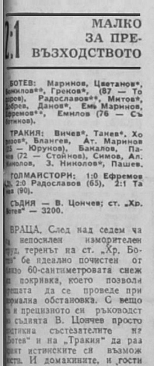 «Ботев» Враца - «Тракия» Пловдив - 2:1