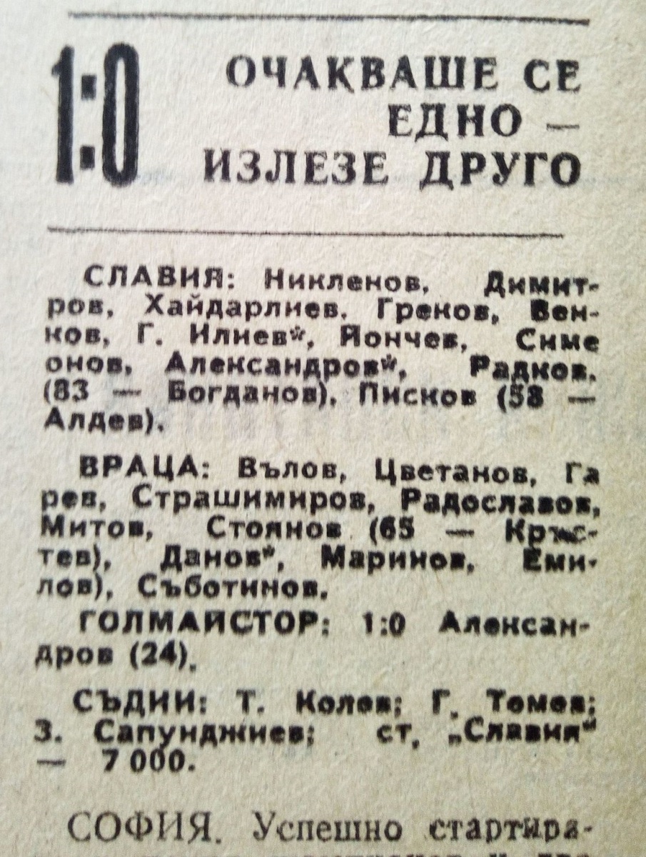 «Славия» София - «Враца» Враца - 1:0