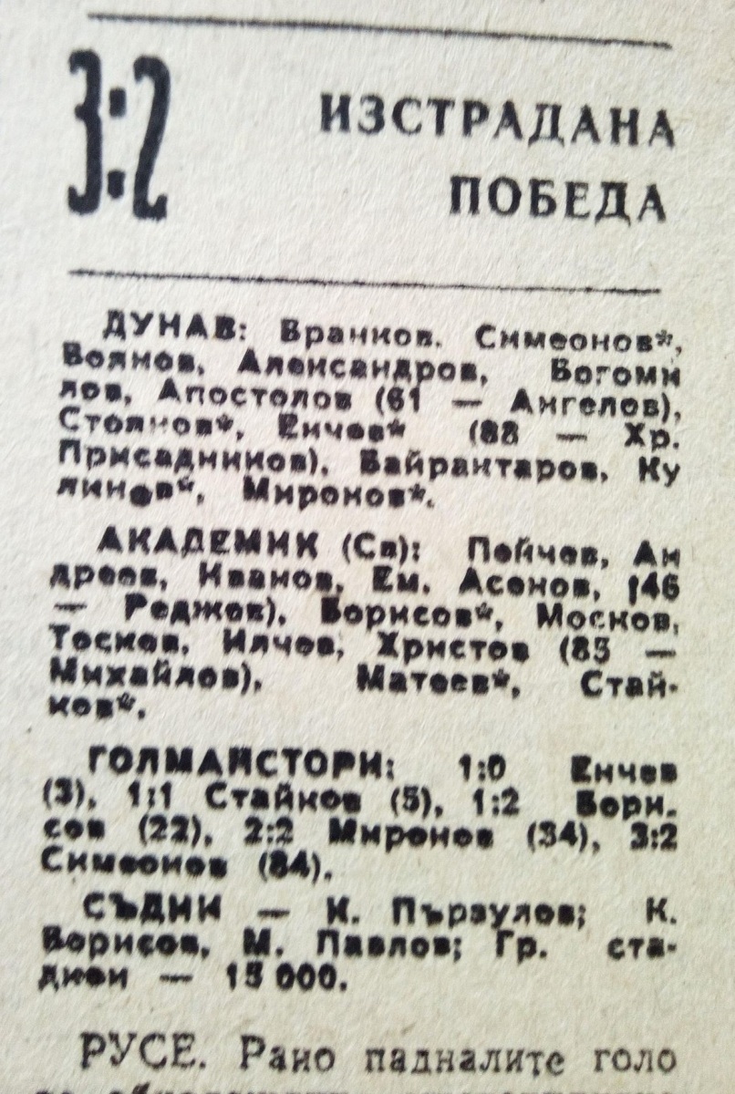 «Дунав» Русе - «Академик» Свиштов - 3:2