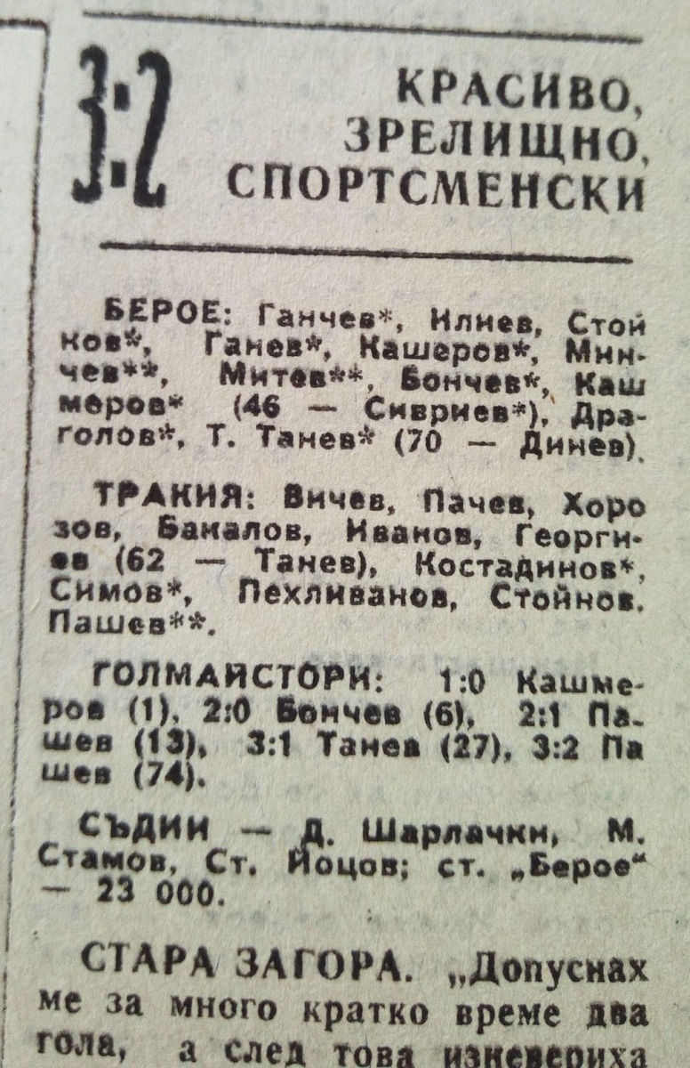 «Берое» Стара-Загора - «Тракия» Пловдив - 3:2