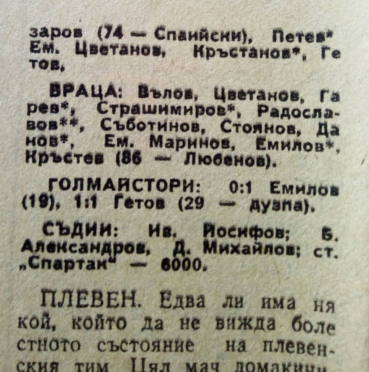 «Спартак» Плевен - «Враца» Враца - 1:1