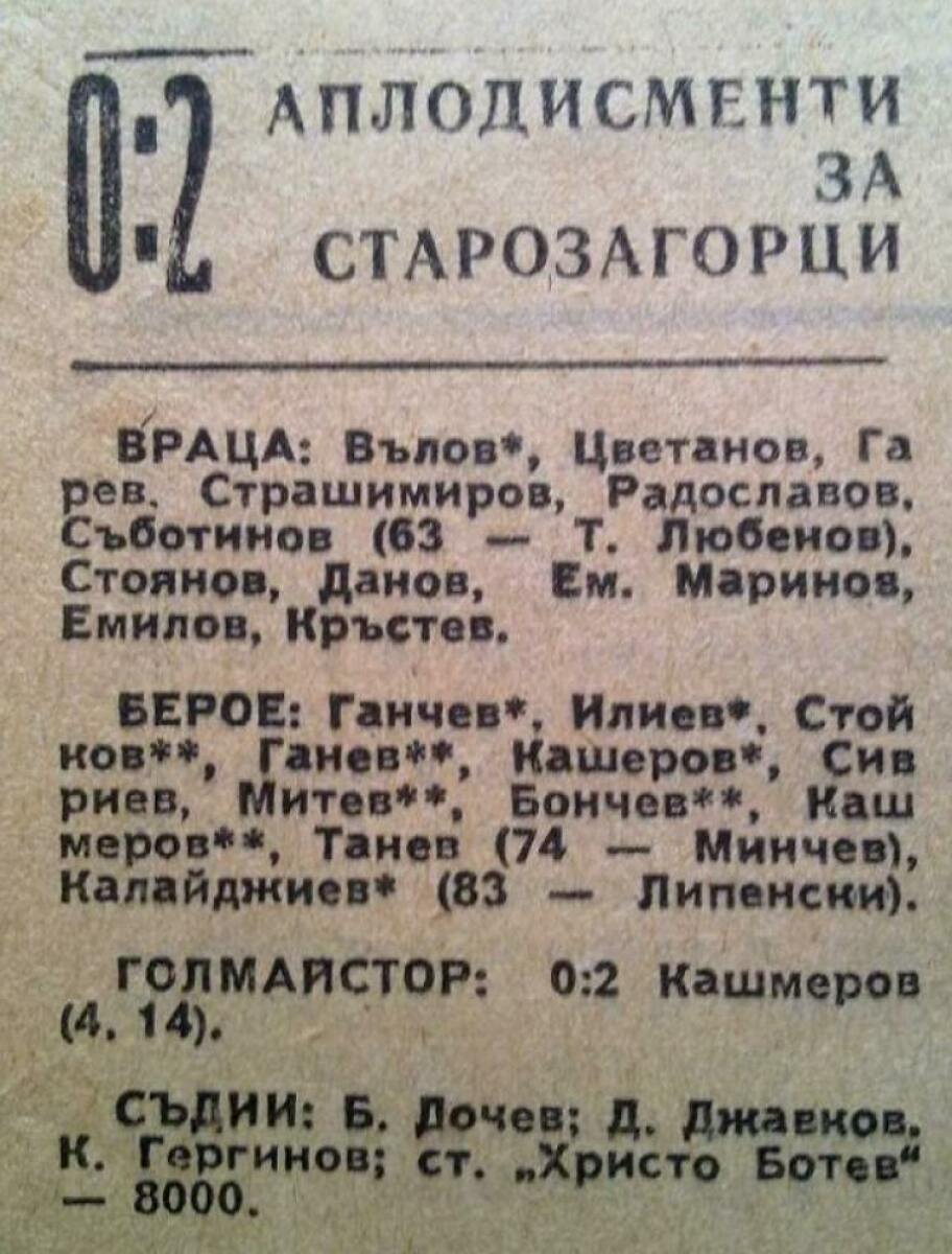 «Враца» Враца - «Берое» Стара-Загора - 0:2