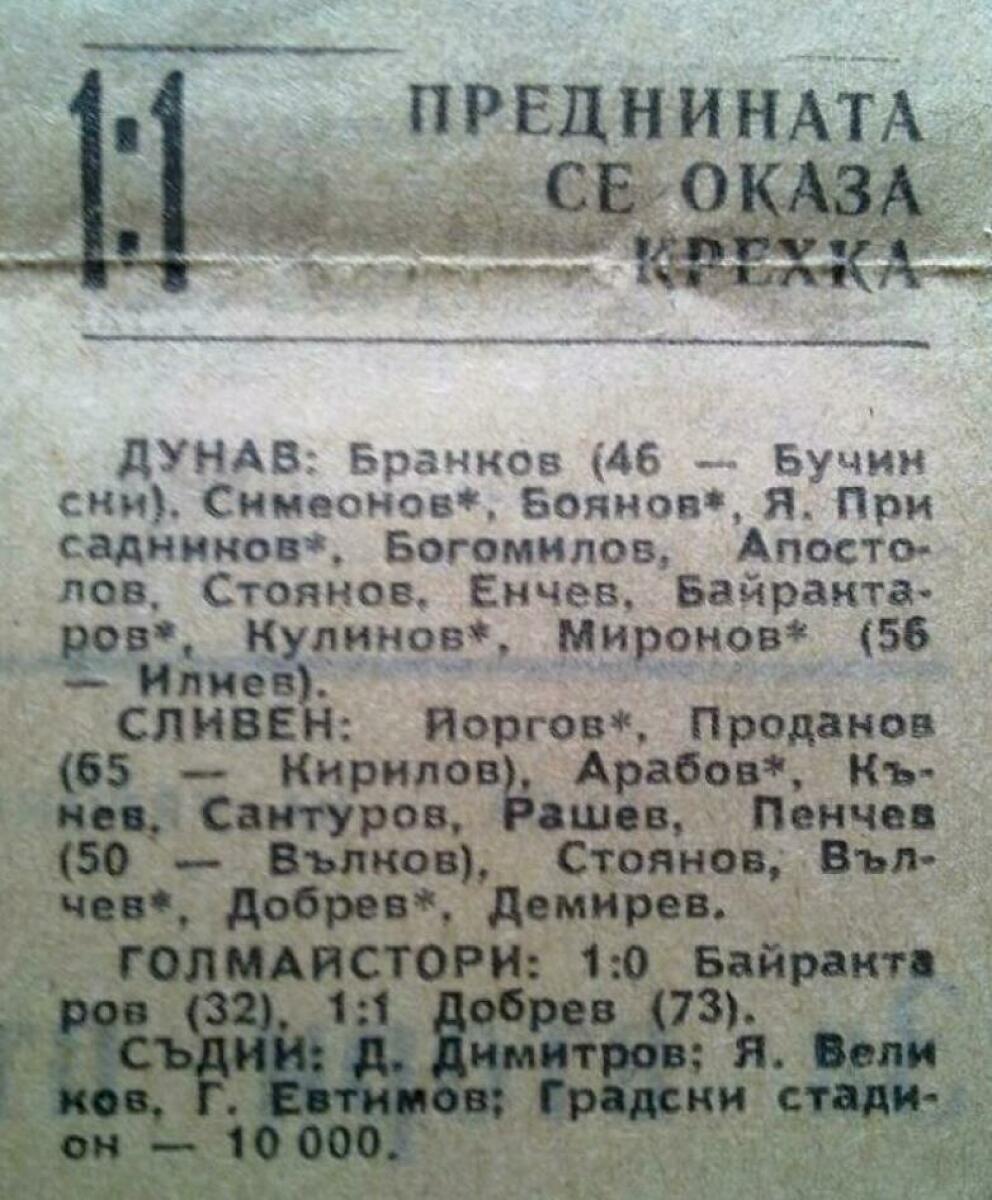«Дунав» Русе - «Сливен» Сливен - 1:1