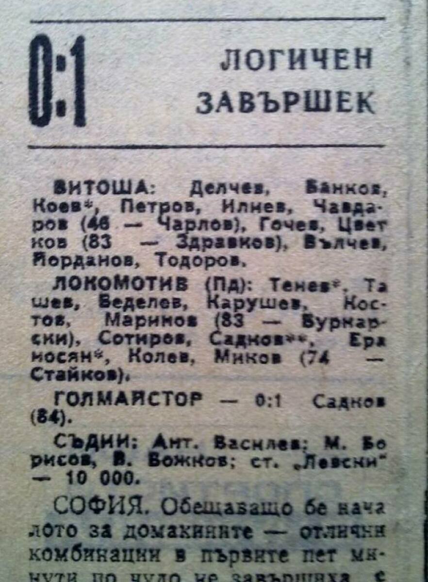 «Витоша» София - «Локомотив» Пловдив - 0:1