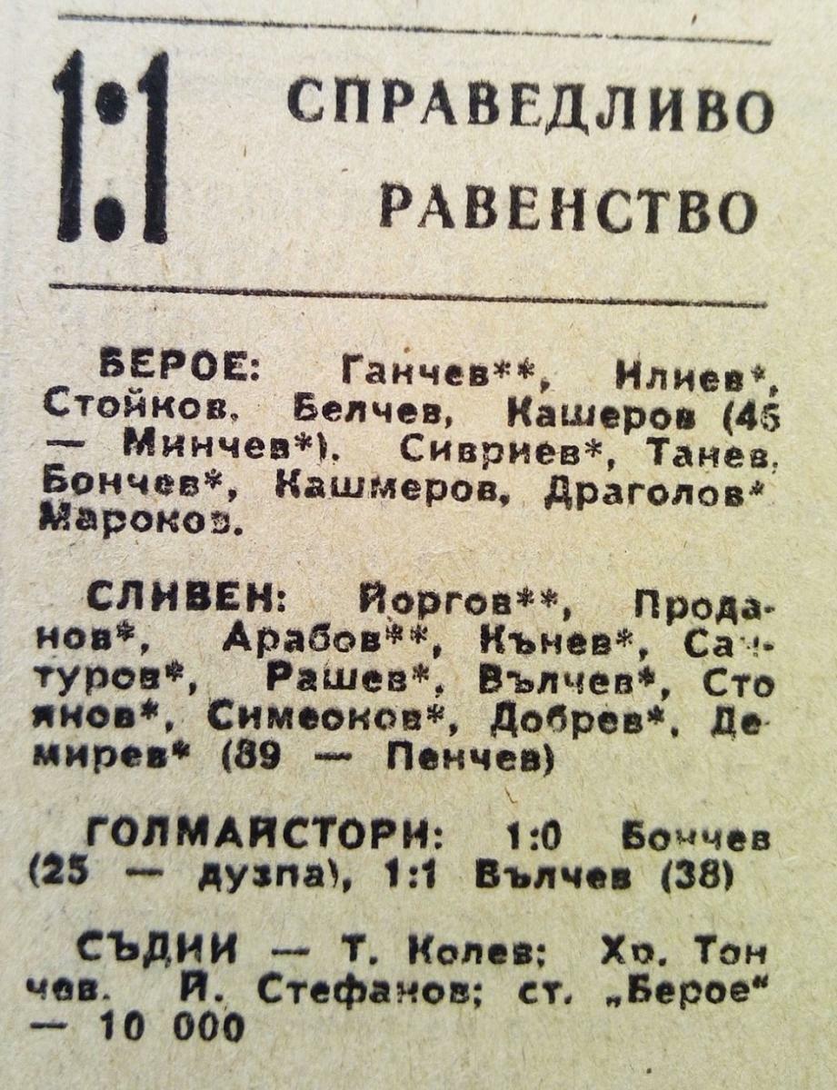 «Берое» Стара-Загора - «Сливен» Сливен - 1:1